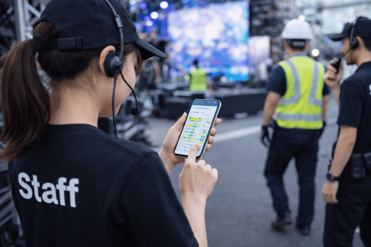 イベントは全国各地で開催されるため、管理者が現場に常駐することは現実的ではありません。各現場での出退勤状況をリアルタイムで把握することは、従来の管理方法では極めて困難でした。
