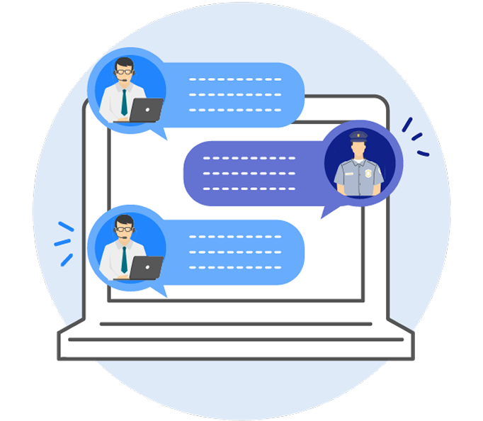 管制画面上ですべての隊員と1:1でリアルタイムでのコミュニケーションが可能です。配置した現場ごとの隊員など、条件に絞ったメッセージ通知もできます。