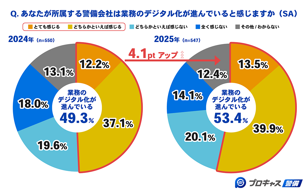 - 警備会社の「業務のデジタル化」昨対比4.1ポイント増。今後も労働環境の変化に期待
