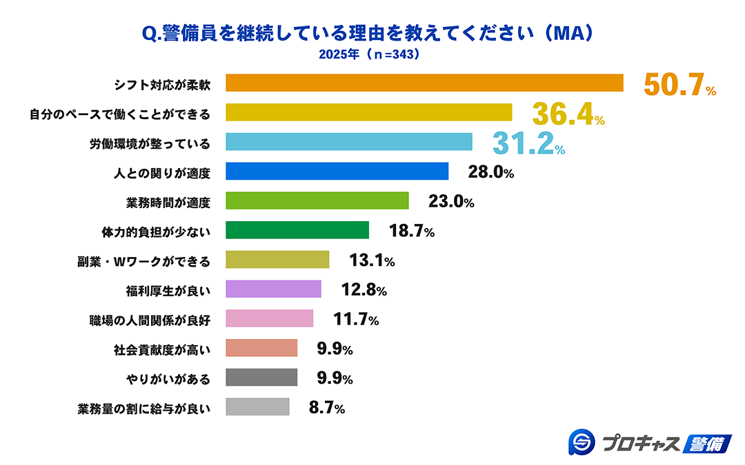 - 警備員の継続理由トップ3に職場定着のヒントあり!柔軟性と労働環境の整備がカギ